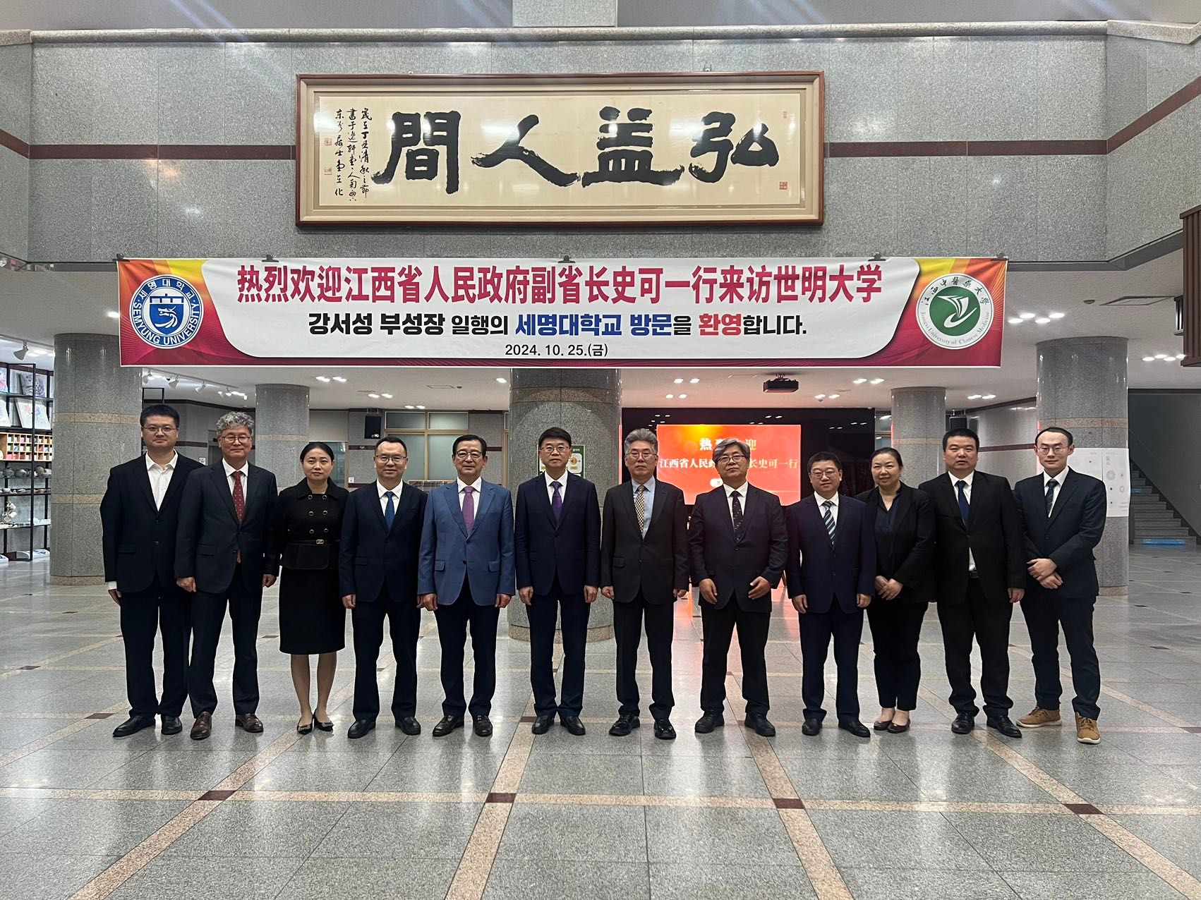 江中新闻网讯(通讯员 巢波)在孔子学院创立20周年之际,10月25日,江西省人民政府副省长史可率江西代表团一行到我校与韩国世明大学共建的中医特色孔子学院调研指导。韩国大元教育财团事务局局长、韩国世明大学法人金荣鲁先生,韩国世明大学副校长金昊显先生,世明大学孔子学院中方、韩方院长陪同调研。