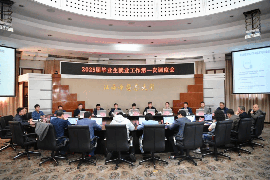 江中新闻网讯(通讯员 王锋 曹森)10月30日下午,学校召开2025届毕业生就业工作第一次调度会。学校党委副书记、校长朱卫丰出席会议并讲话,党委委员、副校长周志刚主持会议,党委委员聂国林、郑晴出席会议。招就处、组织部、人事处、科研处、教务处、学科办、学工处、团委、保卫处、创新创业学院负责人,各学院党政主要领导、分管就业工作副书记、就业干事、全体毕业班辅导员参加会议。
