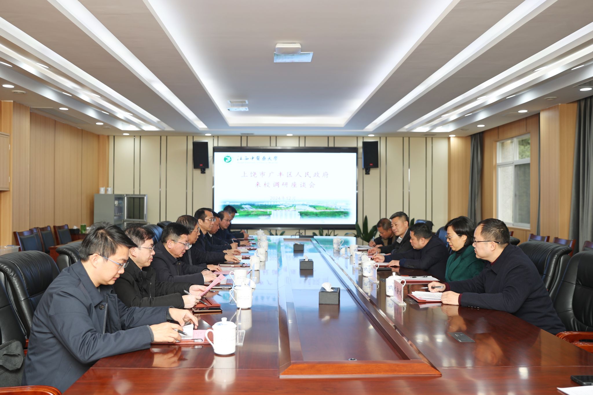 江中新闻网讯(记者 余浩)12月26日下午,上饶市广丰区委副书记、区长姚晗,副区长王斐,区卫健委党组书记、主任吴贞河,区中医院党委书记郑新斌,区中医院党委委员吴星云等一行到江西中医药大学就校地合作事宜进行洽谈。学校党委书记徐兰宾,党委副书记章德林,党委委员、副校长严小军,党委委员、宣传部部长徐道富等出席座谈会。