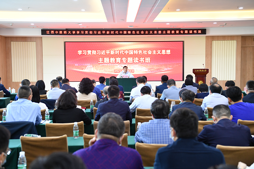 大江网/大江新闻客户端讯 5月8日,江西中医药大学学习贯彻习近平新时代中国特色社会主义思想主题教育专题读书班开班。该校党委书记徐兰宾在开班式上作专题党课报告。他强调,要深入学习领会习近平新时代中国特色社会主义思想,紧紧围绕主题教育“学思想、强党性、重实践、建新功”的总要求,坚持学思用贯通,做到知信行统一,教育引导党员干部在以学铸魂、以学增智、以学正风、以学促干上下功夫见实效,以高质量的主题教育推动学校各项事业高质量发展。