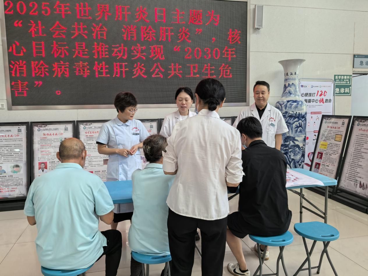 医院在门诊大厅、住院部等显眼位张贴了宣传海报、电子显示屏滚动播放肝炎日主题,向过往患者及家属发放宣传手册,进一步强化大家对肝炎的认识。