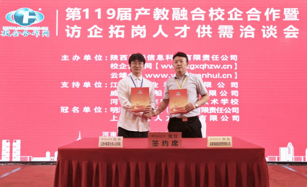 江中新闻网讯(通讯员 丁俊)9月16日,人文学院赴郑州参加第119届产教融合校企合作暨访企拓岗人才供需洽谈会,积极开展“访企拓岗”促就业专项行动。人文学院与多家企业进行了广泛深入的校企合作交流,并与威海海通船舶管理有限公司和山东智库教育科技有限公司两家企业现场签订了校企合作意向协议书。