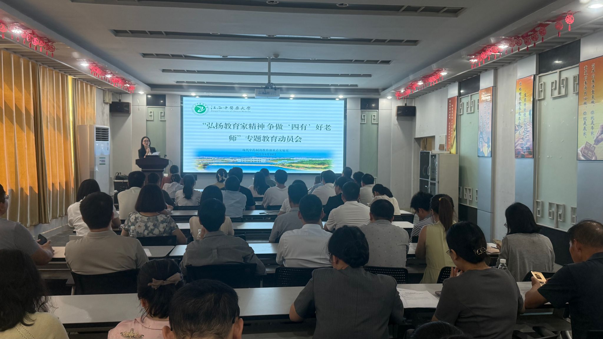 会议传达了学校第41个教师节表彰大会暨专题教育动员会精神,并结合本单位实际,制定了《“弘扬教育家精神 争做‘四有’好老师”专题教育实施方案》,明确目标任务和实施路径,引导全体教师落实立德树人根本任务,全面提升教书育人能力。