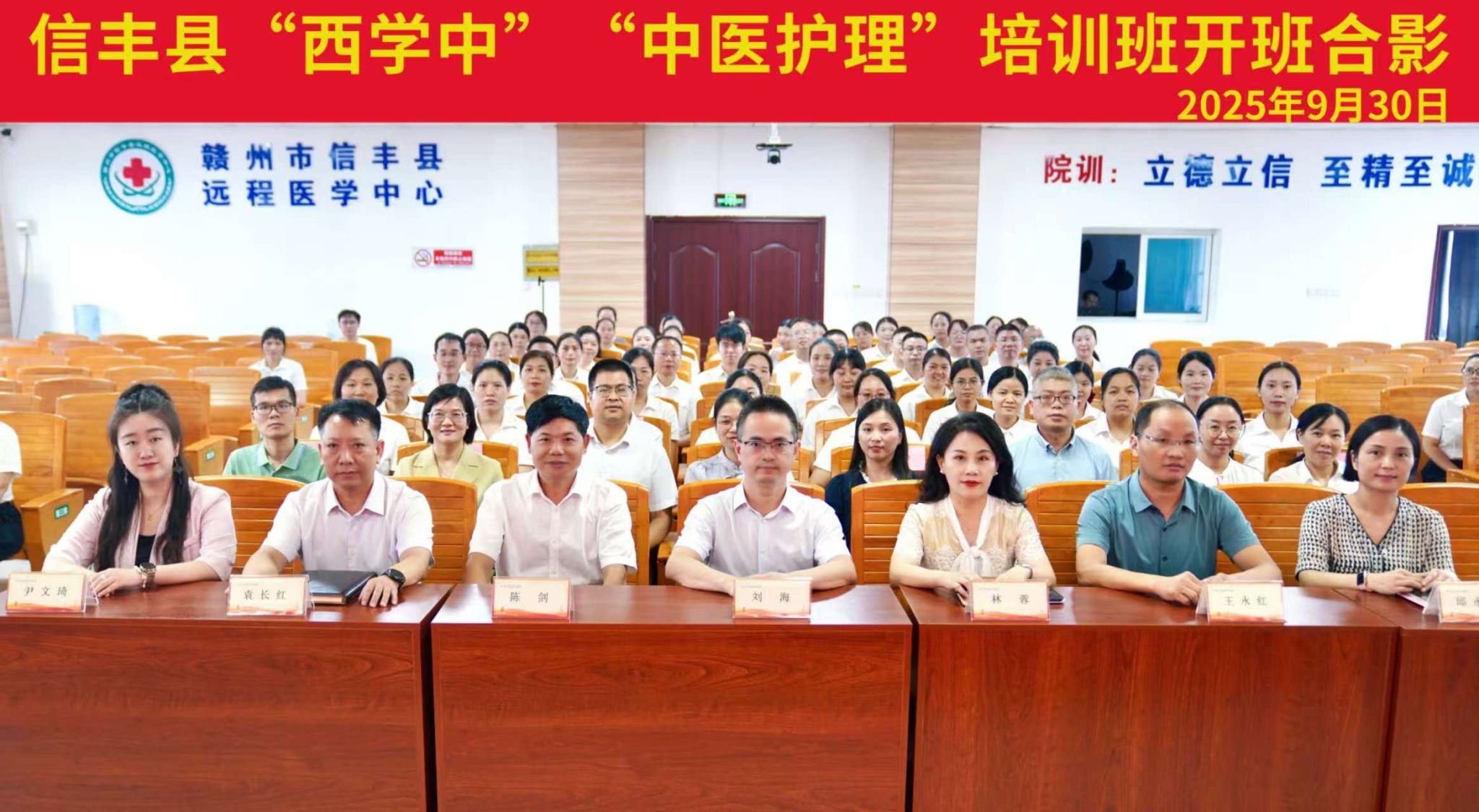 江中新闻网讯(通讯员 尹文琦 丁燕)9月30日下午,信丰县“西学中”“中医护理”培训班开班仪式在信丰县人民医院顺利举行。继续教育学院(培训学院)院长、信丰县人民政府副县长林蓉、信丰县卫健委党组书记、主任陈剑、培训学院培训部、信丰县人民医院、县妇幼保健院相关负责人出席开班仪式。