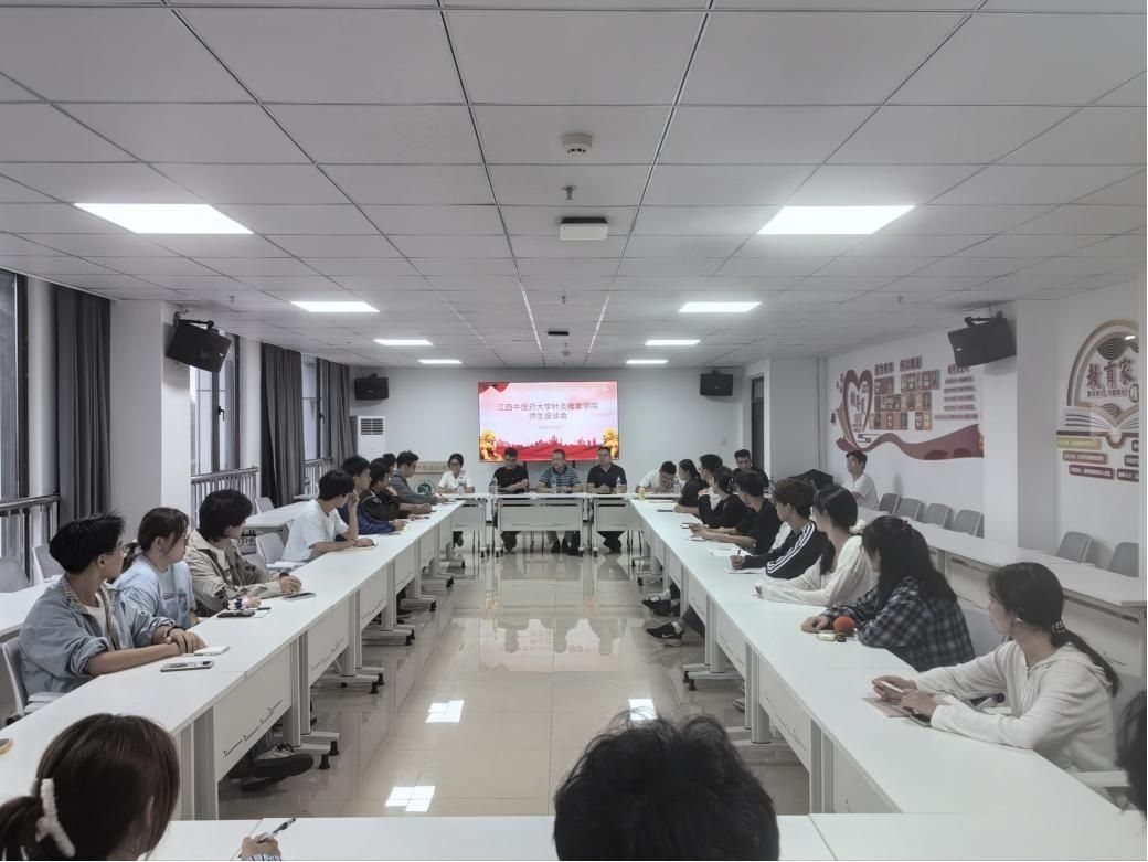 江中新闻网讯(通讯员 李静 毛羽涵)为深入了解学生在校学习与生活状况,切实解决学生实际需求,搭建针灸推拿学院与学生间高效沟通的桥梁,10月14日下午,针灸推拿学院在大学生创新发展中心414召开本学期第一次学生座谈会。学院党委负责人、学生工作负责人、学院辅导员及各班学生代表参加会议。