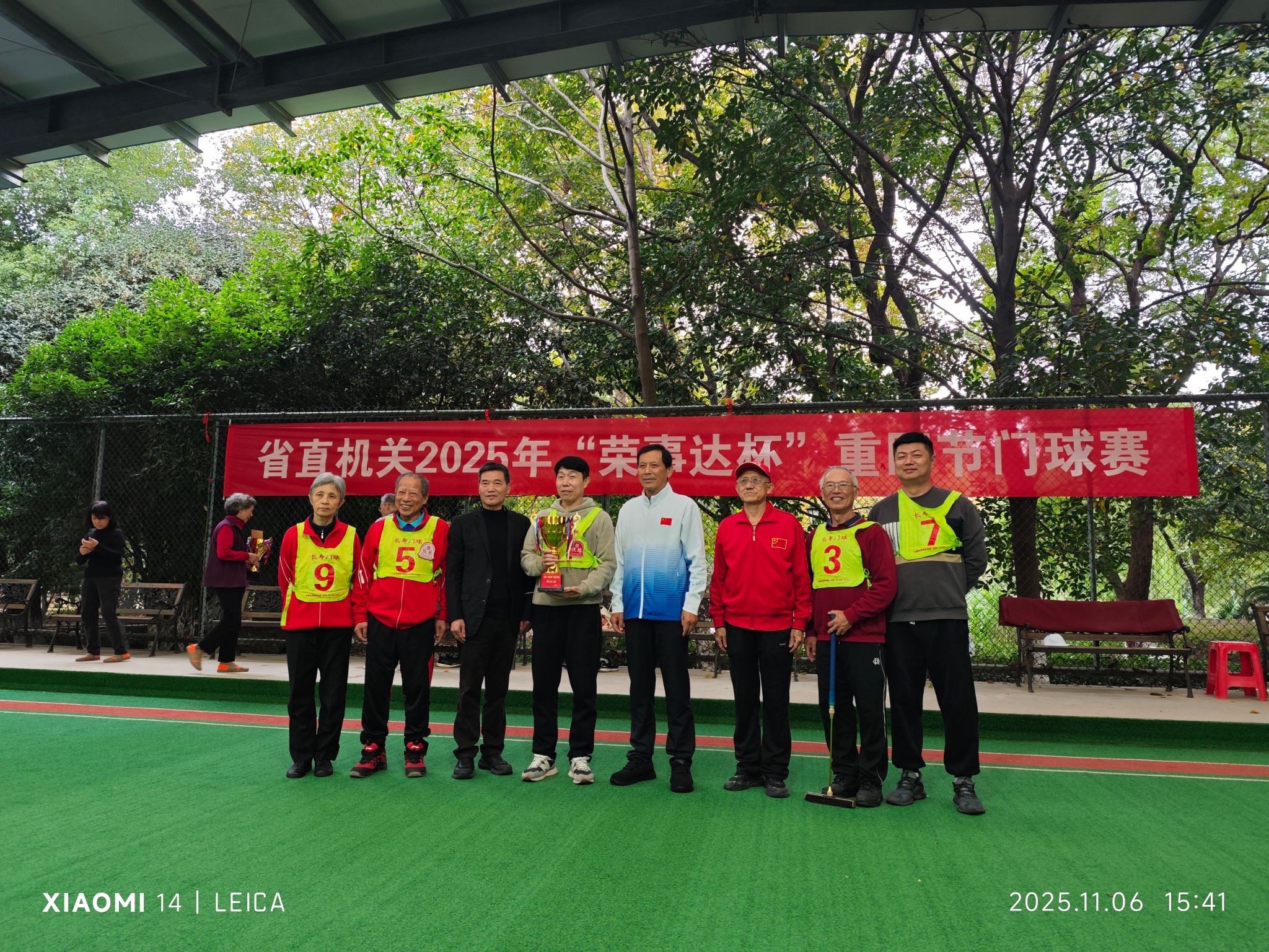 江中新闻网讯(通讯员 何清国)10月28日-11月6日,省直机关2025年“荣事达杯”重阳节门球比赛在省体育局门球场隆重举行,我校老年门球队与来自全省54支队伍同场竞技,经过激烈角逐,我校门球队最终从众多强队中脱颖而出,荣获大赛季军的优异成绩!