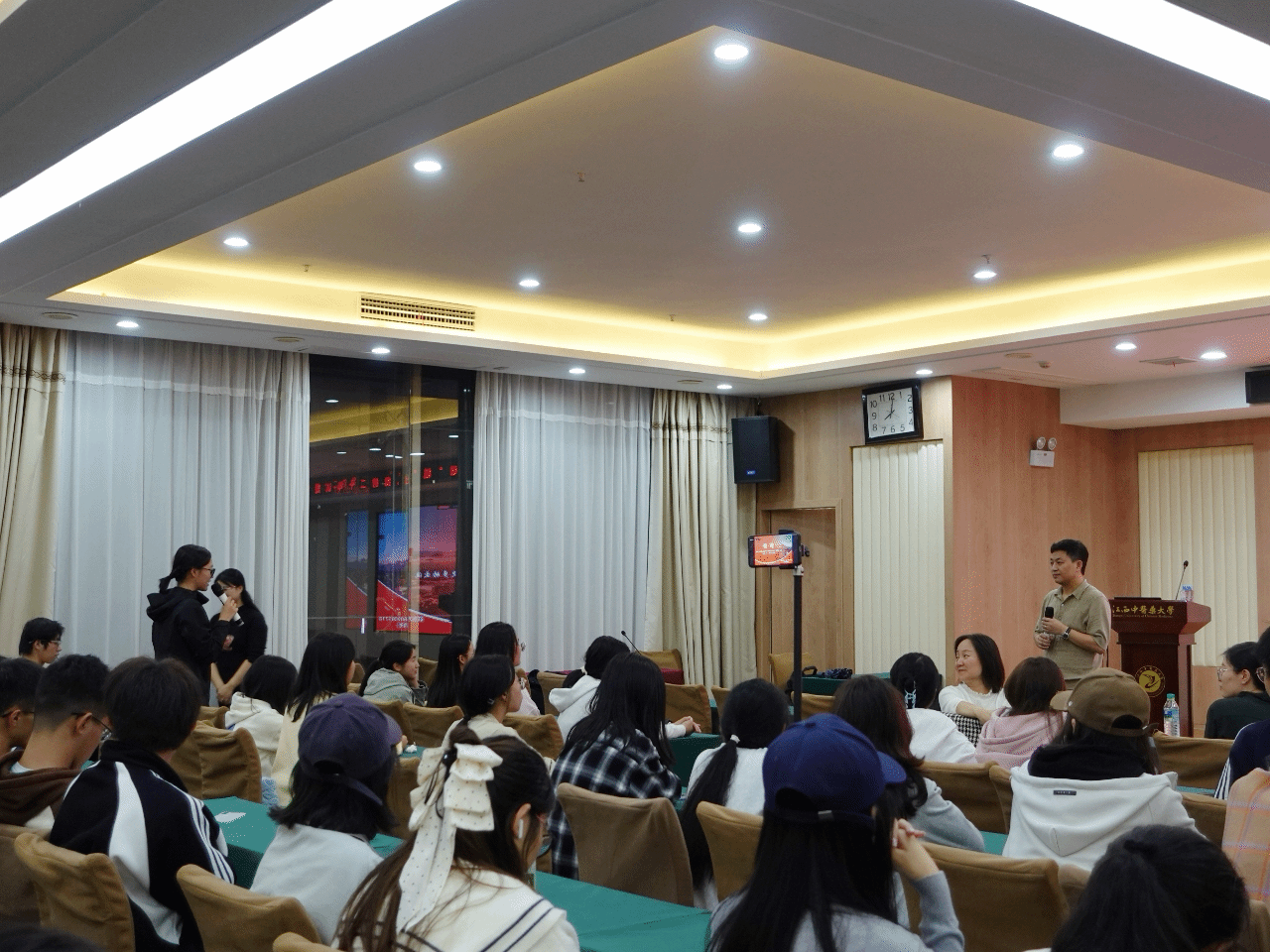 讲座中,付明校友结合自身从江西中医学院本科毕业,到浙江大学硕士、南方科技大学科技管理学者项目深造,再到攻读香港理工大学管理学博士的持续学习经历,以及自2005年加入中润医药集团以来,从基层起步直至担任企业负责人的丰富职业历程,生动阐述了他对行业演变、管理哲学与个人成长的深刻洞察。他围绕“破‘城’而出”的主题,探讨了如何突破思维定式、能力边界与职业瓶颈,在不断学习与实践中实现认知迭代与人生跨越。付明校友还鼓励同学们珍惜大学时光,夯实专业基础,同时勇于走出舒适区,在持续学习与实践中拓宽视野、锤炼能力,为未来投身中医药振兴与健康事业奠定坚实基础。