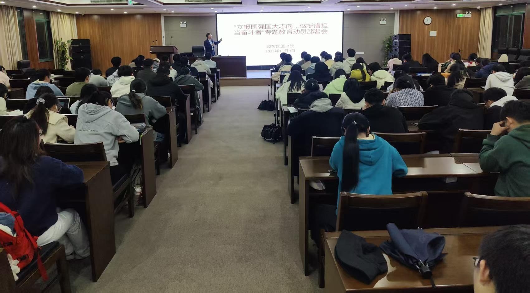 江中新闻网讯(通讯员 陈俊杰)11月9日晚,岐黄国医书院召开“立报国强国大志向,做挺膺担当奋斗者”专题教育部署动员会。湾里、抚生两个校区同步进行,书院领导、学生党支部书记、辅导员、班主任和各年级学生共计300余人参会。