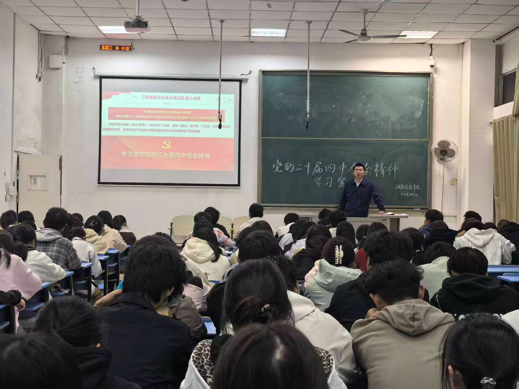 江中新闻网讯(通讯员 陈俊杰)11月9日,岐黄国医书院分别在湾里校区与抚生校区同步举行党的二十届四中全会精神专题宣讲。书院党委书记、副书记分别作宣讲,书院学生党支部书记、辅导员、全体学生参加。