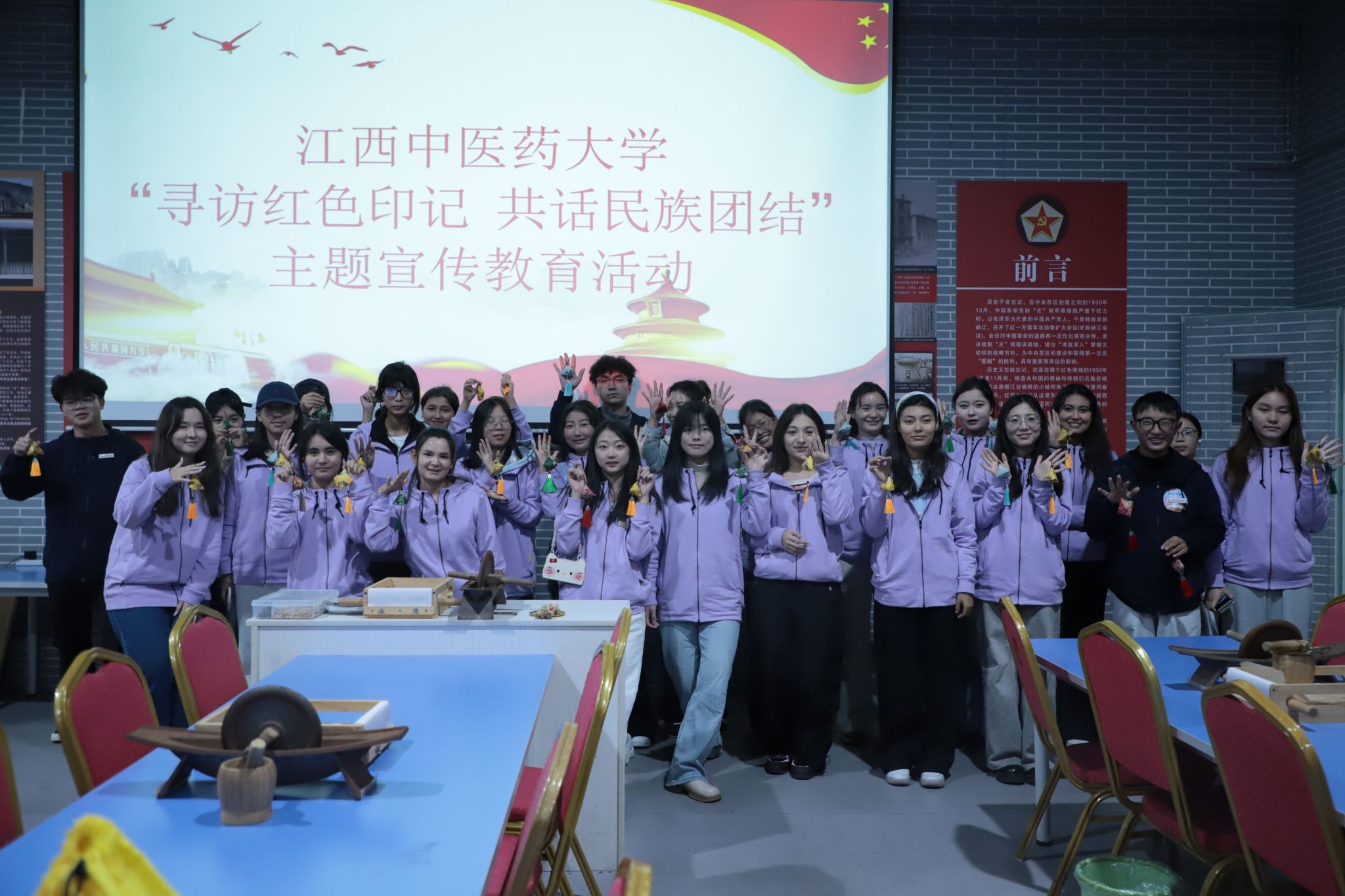 江中新闻网讯(通讯员 王诗宜)11月10日—12日,学校组织30余名各族学生赴吉安市峡江县金坪民族乡、福民乡等地开展“寻访红色印记 共话民族团结”主题宣传教育活动。通过爱国主义教育、理想信念教育、乡村振兴支教、义诊、中医药研学实践等形式多样、内涵丰富的主题活动,推动铸牢中华民族共同体意识教育从“理论认知”转化为青年学子的思想自觉和行动自觉,引导各族学生厚植家国情怀、增强民族认同。