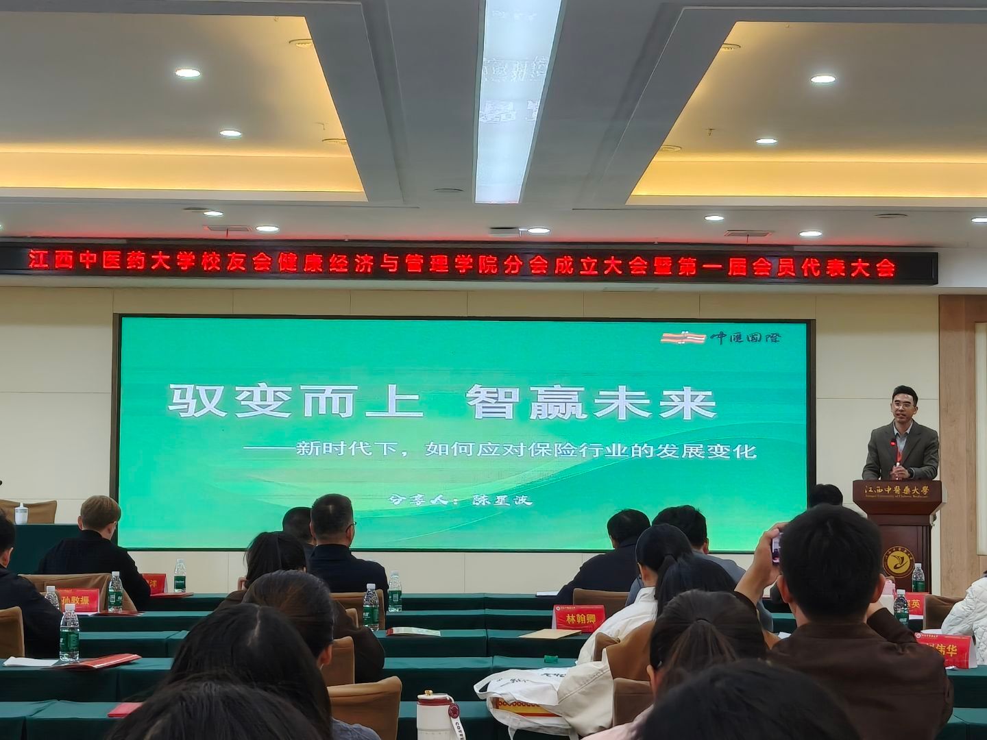 最后,2007届保险学校友、中汇国际保险经纪股份有限公司江西分公司总经理陈星波带来《新时代下,如何应对保险行业发展变化》的深度解析。他剖析保险行业机遇:人口老龄化催生养老年金、长期护理保险需求,AI赋能智能核保与理赔反欺诈;同时指出跨界科技巨头竞争、网络安全、极端气候等新风险挑战,强调“持续学习与创新思维是应对不确定性的核心武器”,建议学生夯实专业基础、拥抱科技成为“保险+技术”复合型人才。