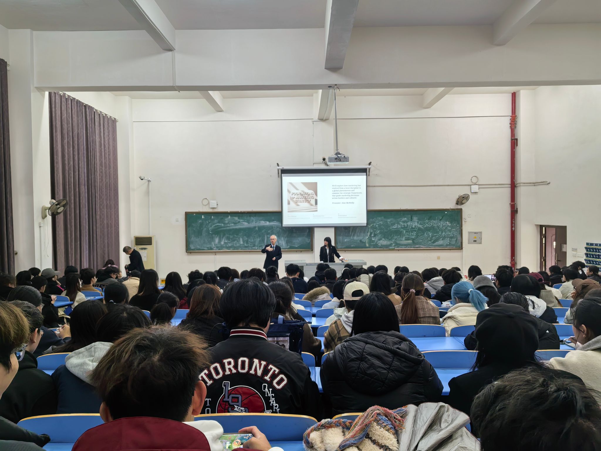 宣讲会上,英国大曼彻斯特大学学校国际处Alan McNeilly教授为学生们带来了一场内容丰富、形式生动的国际交流课程。Alan McNeilly教授以经典的4P营销理论为框架,通过哈利·波特、拉布布等具有文化代表性的案例,生动阐释了市场营销理论在不同文化背景下的实践应用,引导学生从跨文化视角深入思考品牌国际化路径,现场反响热烈。