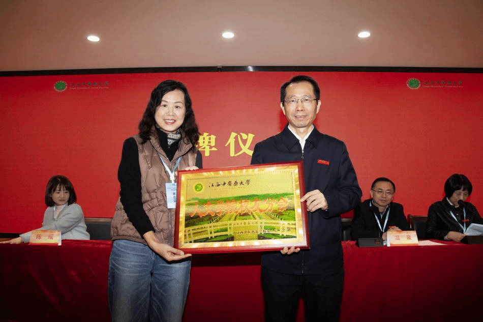 会上,校友办主任宣读了《关于同意成立江西中医药大学校友会人文学院分会的批复》,为分会依法依规运作提供了正式依据。大会审议并全票通过了分会第一届理事会成员建议名单,余亚微当选分会会长。在热烈掌声中,章德林为人文学院校友分会授牌,与会领导共同向当选理事颁发聘书,标志着分会领导团队正式成立,组织架构进一步完善,为后续工作高效开展奠定了坚实基础。