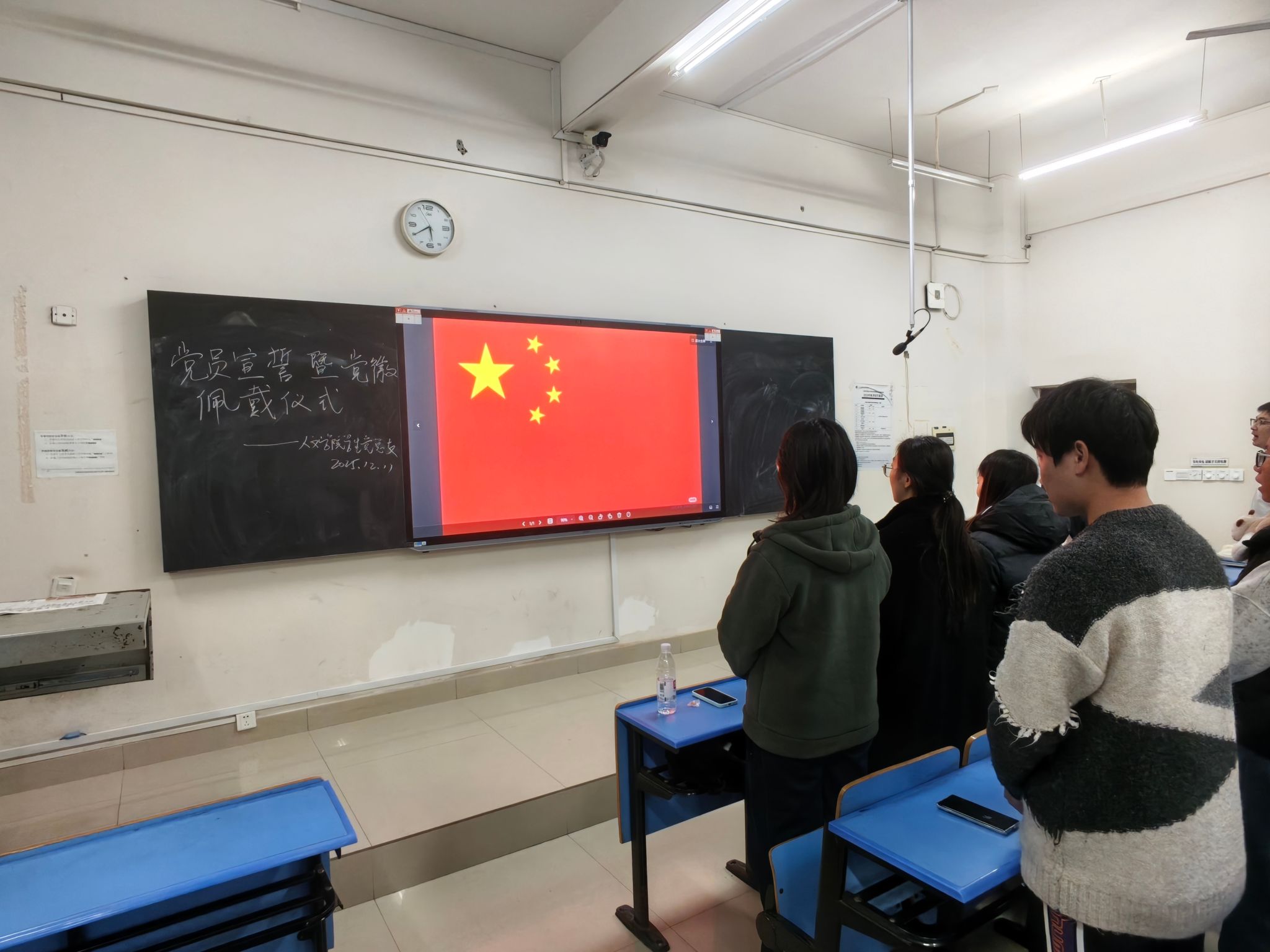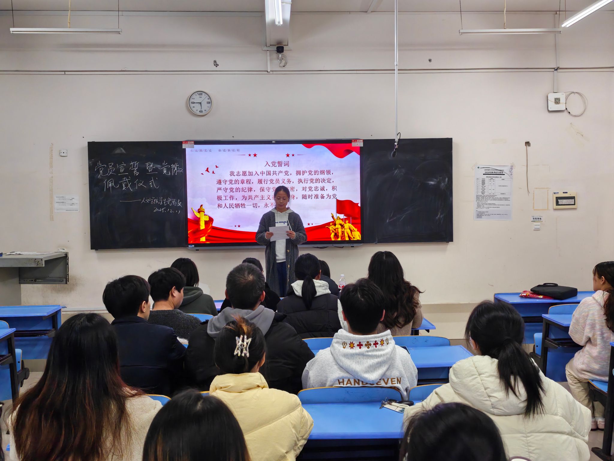 仪式在庄严的中华人民共和国国歌声中正式拉开帷幕,激昂旋律叩击心扉,凝聚起全体党员的责任与担当。随后进入宣誓环节,新发展预备党员面向鲜红党旗,举起右拳庄严宣誓,铿锵誓言彰显对党的忠诚与为共产主义事业奋斗终身的坚定决心;全体党员同步起立重温入党誓词,重温初心使命,砥砺奋进意志,现场氛围庄重肃穆。