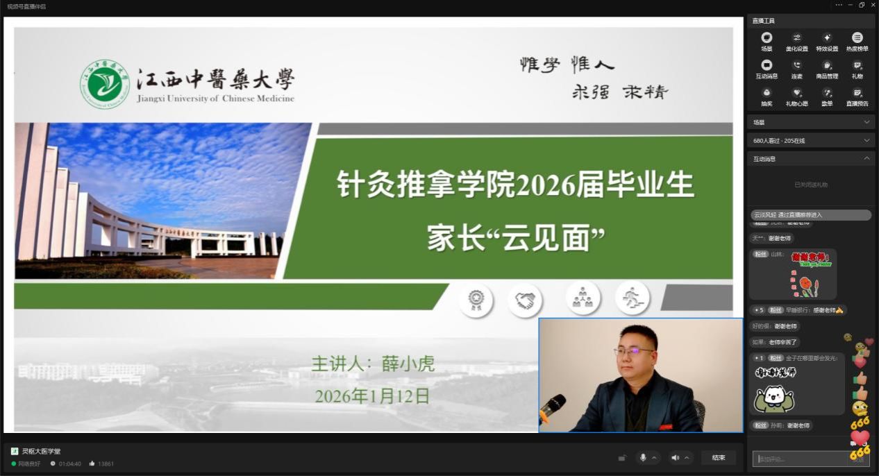 此次家长会以直播的形式开展,是针灸推拿学院“家校协同”育人工作的重要环节,也是在新形势下我院为拉近家校距离、破解就业困境,推动家校共育的创新举措。两场家长“云见面会”直播在线人数2K+,点赞及互动4W+,取得了良好的效果。一方面加强了家校联系,进一步让家长了解学生的职业规划和成长道路;另一方面也搭建了家校就业信息网络互动平台,使就业信息在学院和家长双线推送机制下得到更有效利用。