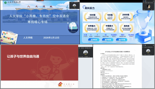 江中新闻网讯(通讯员 丁俊)为深入贯彻落实教育部2026届高校毕业生“寒假促就业暖心行动”工作部署,践行“就业不放假、服务不打烊”的工作理念,切实关怀毕业生求职需求,1月12日,人文学院开展“小而精·专而优”寒假暖心专场空中宣讲会。活动精准筛选英科医疗集团、深圳市复米健康科技有限公司、义乌众云汽车用品股份有限公司三家适配度高的优质单位参会,聚焦医疗用品、特殊教育、外贸等毕业生重点关切领域,带来60余个优质岗位,吸引20余名毕业生在线参与。