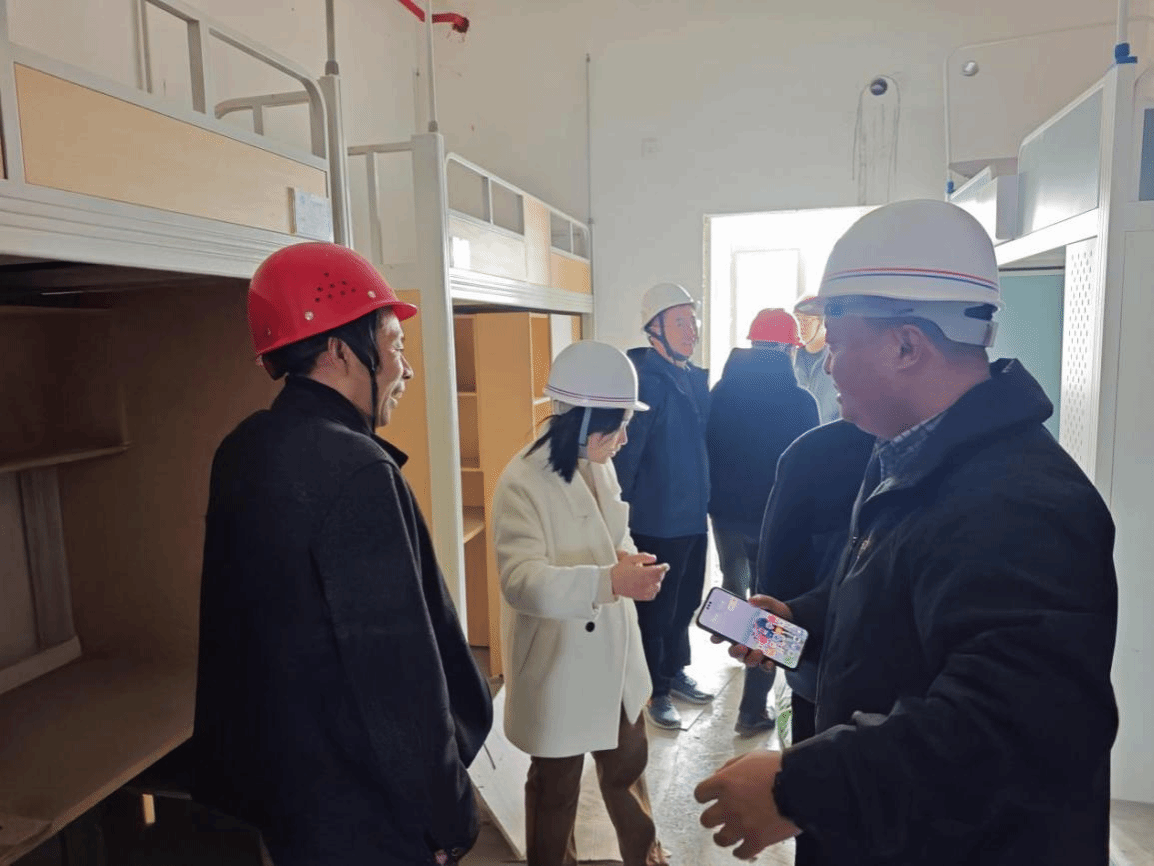 “纸上得来终觉浅,绝知此事要躬行”。专题学习会后,全体党员戴上安全帽,深入施工现场进行实地调研。 在样板间内,大家仔细查看了室内采光及空间布局,对照“高标准、严要求”的建设准则,对装修细节进行了现场研讨、查摆问题,确保学生宿舍建成经得起检验的精品工程、样板工程。 在施工主楼前,党支部成员重点检查了外架拆除及临边防护措施落实情况。党支部书记在现场总结时强调:“此次主题党日活动不仅是一次深刻的党性实践锻炼,更是一场直面问题的现场办公。我们要擦亮‘廉洁支部’品牌,立足岗位,以‘厉行节约、提质增效’的担当精神,站好岁末年初的安全生产岗,确保项目如期高质量交付。”