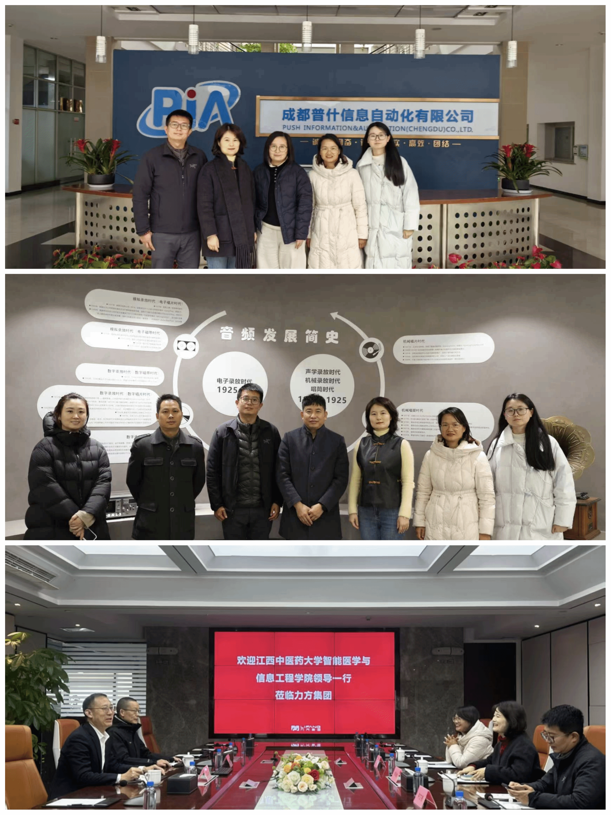 团队先后调研1206中医产业中心、传智培训中心、成都普什信息自动化有限公司、二号乐章声学科技有限公司、立方数字科技集团等5家在医疗信息化、人工智能、数字科技等领域的优质企业。通过走进研发基地、参观生产线、体验实训环境,团队深入了解企业技术应用场景、岗位结构及人才发展路径,为优化人才培养体系获取了前沿行业洞察。