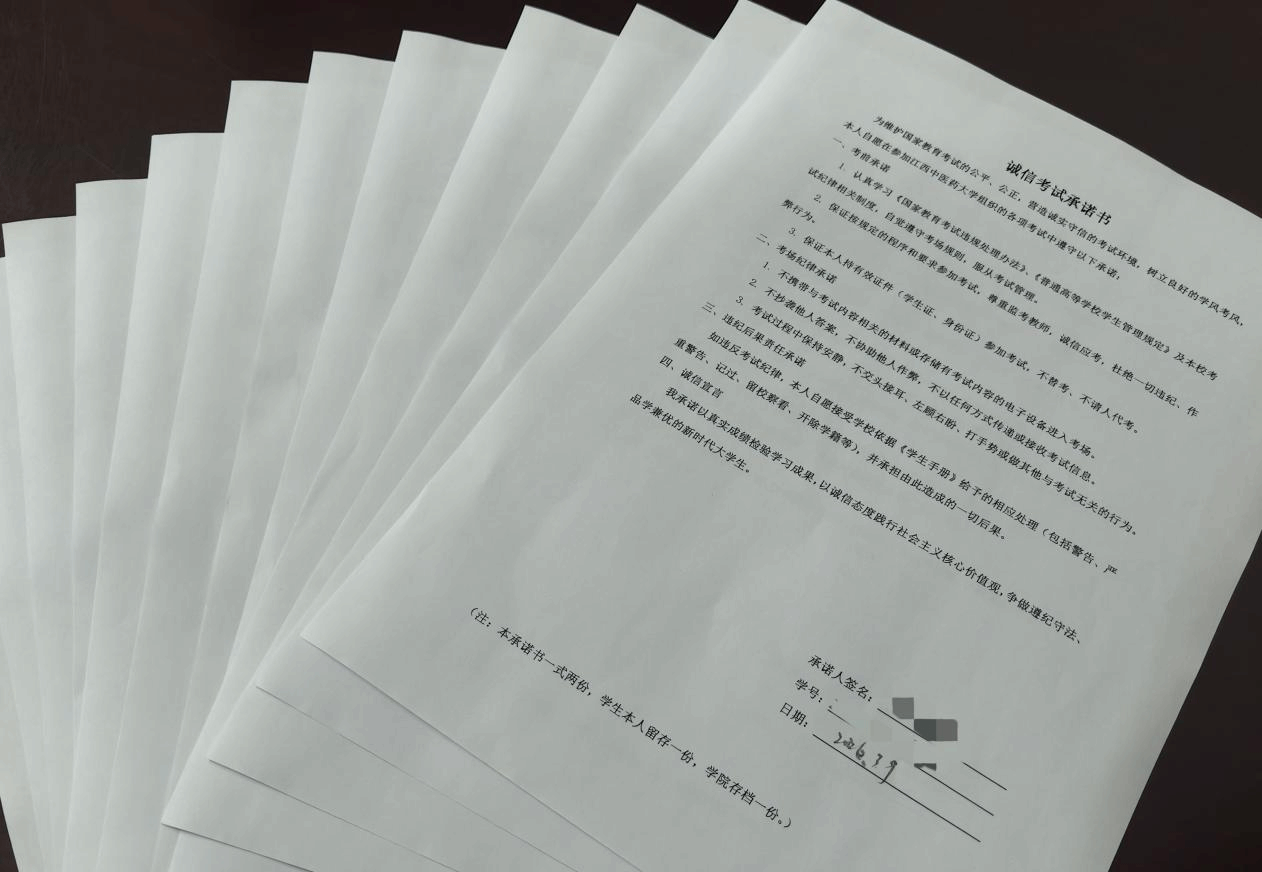 会议最后,全体参会学生签署《诚信考试承诺书》,郑重承诺将严格遵守考场纪律,诚信应考、杜绝舞弊,自觉维护考场秩序。承诺书签署完毕后,相关负责老师现场解答学生关于补缓考时间安排、备考重点、违纪认定等方面的疑问,耐心回应学生诉求,进一步消除学生备考及应考过程中的困惑。此次考风考纪教育大会,不仅强化了学生的诚信意识和纪律观念,也为人文学院补缓考工作的规范、有序开展提供了有力保障,助力营造公平公正、诚信文明的考试氛围。
