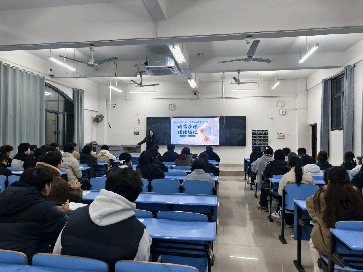 会上,相关负责老师围绕四大核心板块展开详细讲解与提醒。在考风考纪板块,明确考场基本规则,强调诚信考试的重要意义,引导学生树立“诚信应考、杜绝舞弊”的理念;在违纪处分板块,结合学校相关规章制度,详细解读各类考试违纪作弊行为的具体情形及对应处分措施,用真实案例敲响警钟,让学生深刻认识到违纪作弊的严重后果;在考前备考板块,针对补缓考备考特点,为学生提供科学的备考建议,鼓励学生合理安排时间、查漏补缺,以良好状态应对考试;在注意事项板块,重点强调考试时间、入场要求、证件携带、答题规范等细节,确保学生全面掌握考试相关要求,避免因疏忽影响考试。