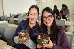中医学院分工会、药学院分工会开展微景观DIY、胸针手作活动,研究生院分工会、人文学院分工会及阳明二分会分别开展插花艺术、DIY 仿真花袋活动。大家精心选材、耐心创作、细心修剪、巧妙搭配、创意组合与缝制装饰,打造出错落有致、色彩明艳的花艺及手工作品,在沉浸式创作中感悟生活美学,增添了节日的幸福感与仪式感。