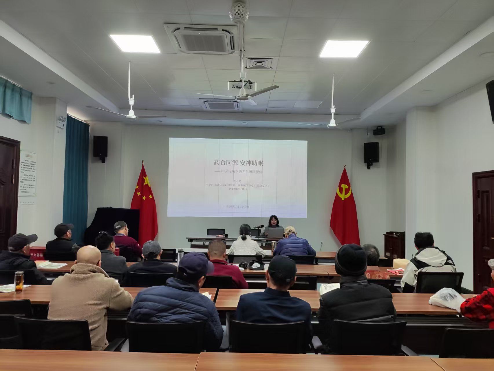 本期健康讲座题为《药食同源 安神助眠》,由江西中医药大学附属中医院李小琴博士主讲。她从老年人睡眠的重要性、老年人失眠的中医原因、药食同源——助眠食材与用法、中医助眠小妙招等方面详细讲解,帮助老年人理解睡眠的中医原理,掌握改善睡眠的常用方法。互动环节,老同志们踊跃举手提问,李小琴耐心细致倾听,给出科学详尽的解答及个性化指导。