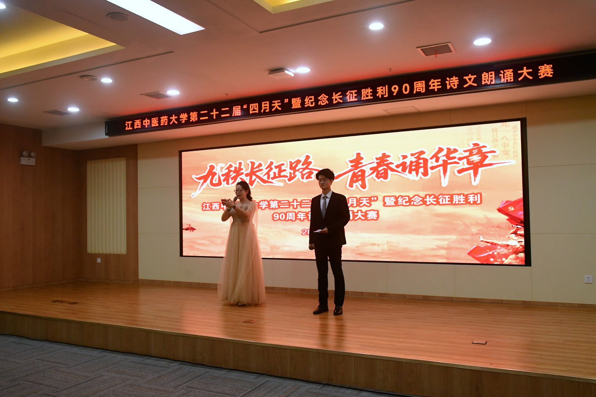 江中新闻网讯(学生记者 肖小艳 鲍慧宁 曾敏慧)4月10日,学校举办第二十二届“四月天”暨纪念长征胜利90周年诗文朗诵大赛。活动以“九秩长征路,青春诵华章”为主题,由党委宣传部、学工处、团委主办,校学生会、江中广播站、大学生融媒体中心承办,师生代表200余人共同重温峥嵘岁月,感悟长征精神。