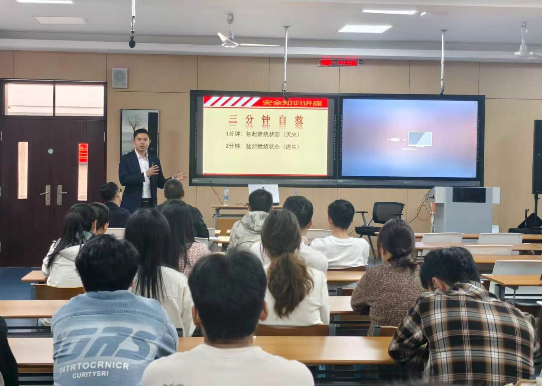 本次培训分为消防理论知识讲解和实战演练两个阶段。在理论教学环节,消防培训讲师结合近年来高校及科研机构典型火灾案例,系统讲解了火灾预防、初期火灾扑救、疏散逃生技巧及消防器材使用方法。培训现场还强调了“三分钟自救”理念,重点介绍了“初起燃烧状态下的1分钟灭火”与“猛烈燃烧状态下的2分钟逃生”方法,帮助师生在紧急情况下快速做出正确判断和应对。
