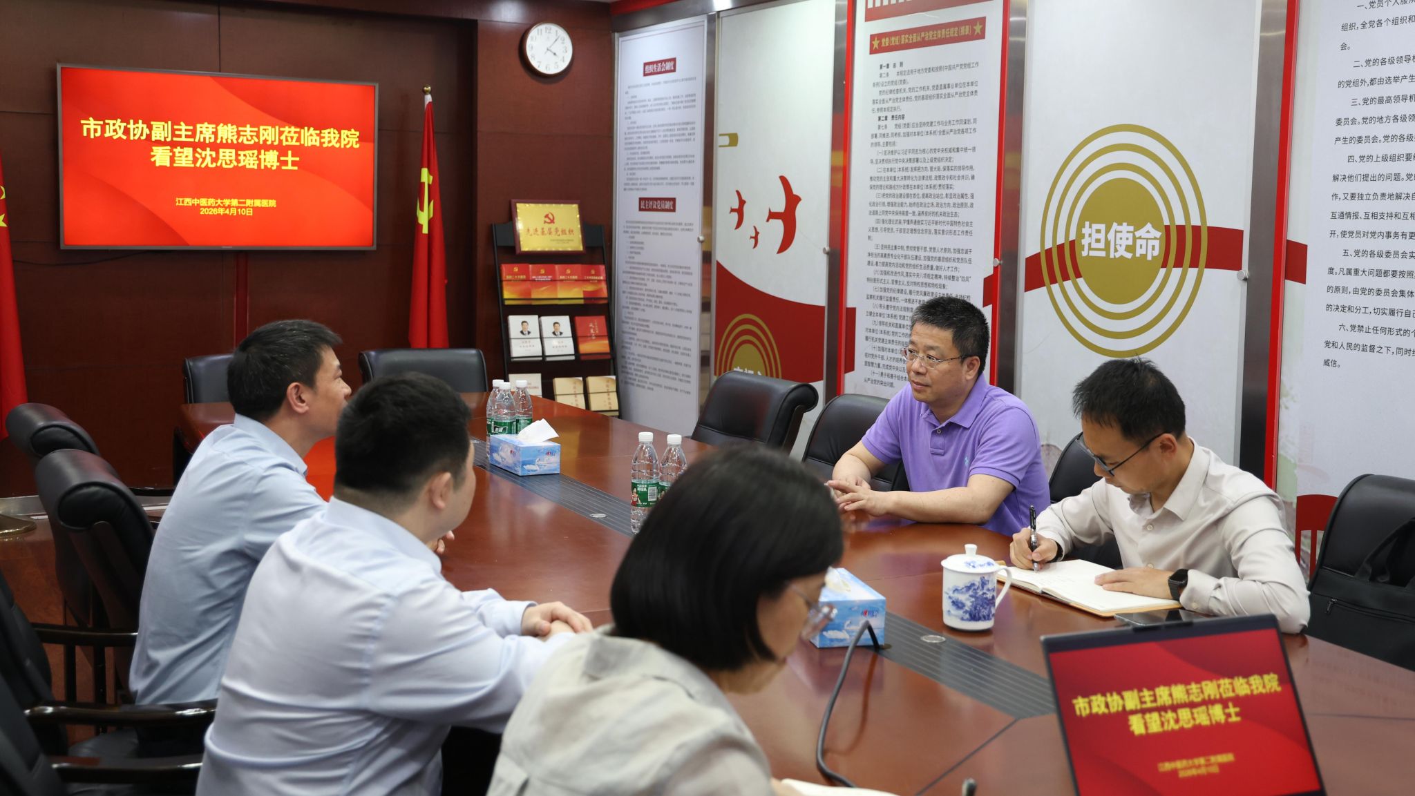 江中新闻网讯(通讯员 陈纷)近日,南昌市政协副主席熊志刚一行专程来到二附院,看望慰问南昌市政协委员、二附院高层次人才代表、泌尿外科负责人沈思瑶博士。