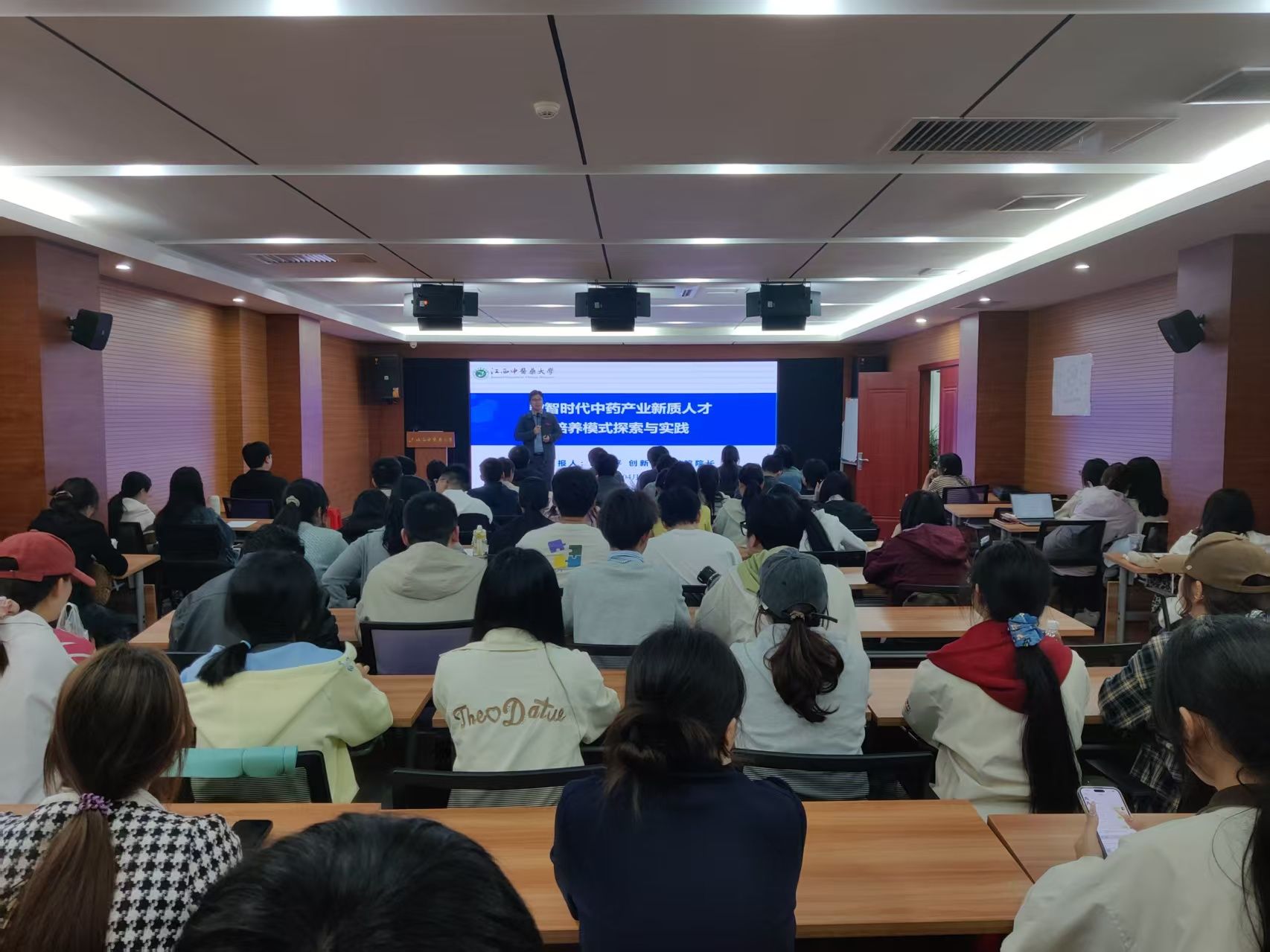 在讲座中,艾卫平详细解读了学校以“双惟”育人理念为引领的改革实践:通过融入工科课程、创设校企融合课程,推动教学从“讲清楚”向“做明白”转变;以产业真问题驱动实践教学,依托“一核一区多中心”办学格局,构建浸润式、场景式的全链条实践平台;同时结合“小”学期制、长学制优化等改革举措,以数智技术赋能中医药传承创新。