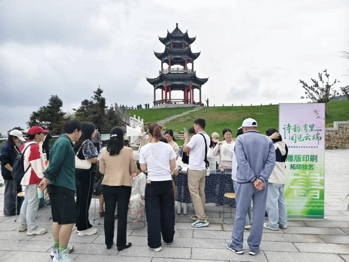江中新闻网讯(通讯员 黎莉)为深入推进全民阅读,活化传承中华优秀传统文化,4月17日下午,学校图书馆携师生团队亮相湾里管理局主办的“诗韵湾里·阅见云端”全民阅读主题活动现场,依托非遗雕版印刷与拓印技艺沉浸式体验项目,将千年古籍文化与云端山水相融,为市民游客奉上一场兼具文化底蕴与互动趣味的文化盛宴。