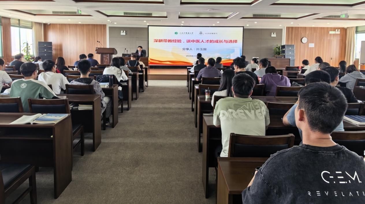 孙玉国老师讲座以“中医人才成长与职业选择”为核心,结合自身带教经验与行业实践,围绕三大维度展开分享:一是聚焦学业核心,梳理成长路径。从当前中医行业需求出发,针对不同年级学生的需求分层给出学习建议。二是拆解优势短板,明确提升方向。引导学生既要巩固专业特色,也要主动对接市场需求,避免人才培养与行业实际脱节。三是直面择业困惑,给出务实指导。针对同学们普遍关心的体制内外职业选择问题,客观分析了两类发展路径的特点与注意事项,尤其点明了体制外就业的常见误区。