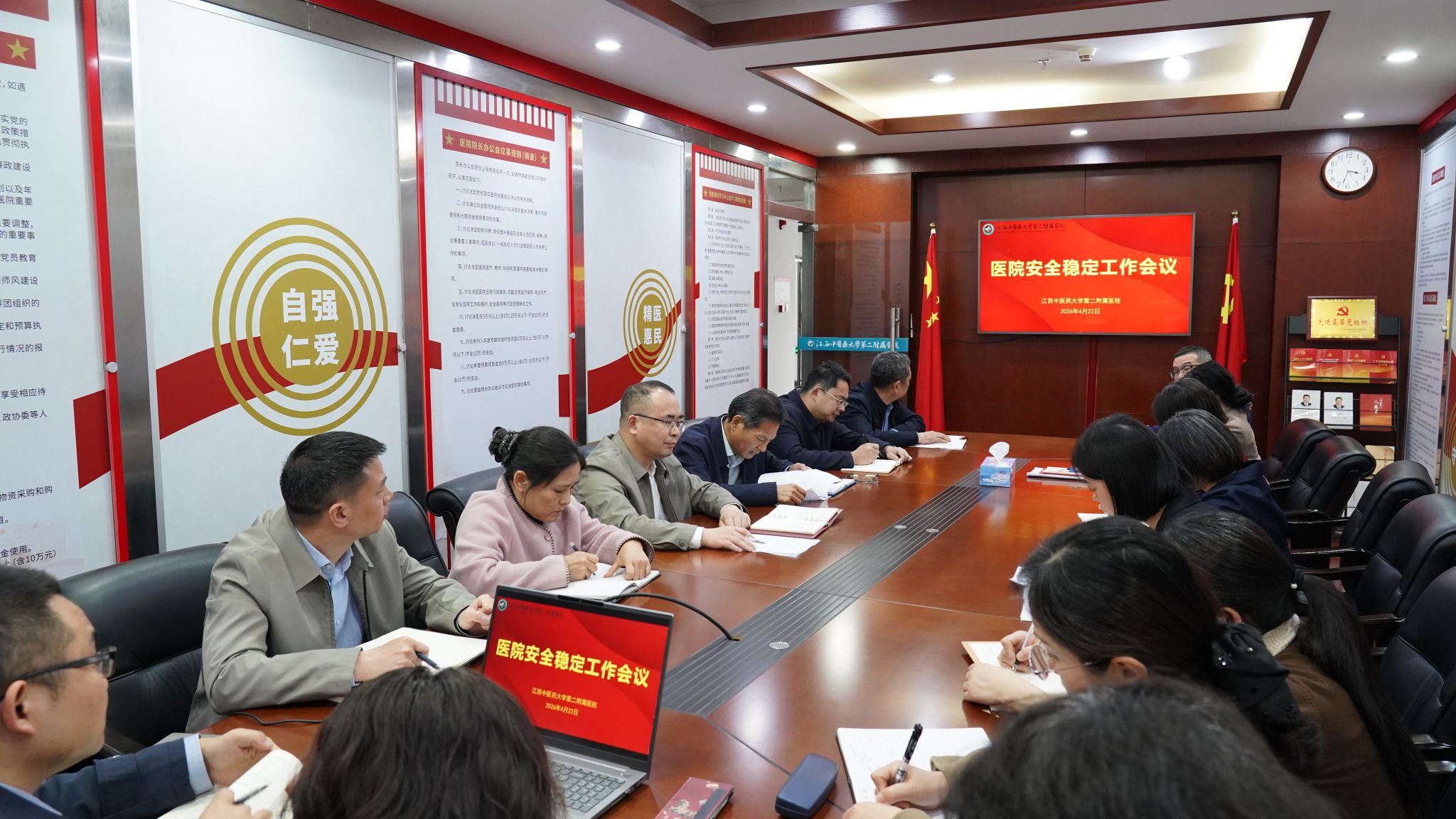 江中新闻网讯(通讯员 周春燕)4月22日,二附院召开安全稳定工作会议,传达全省卫生健康系统安全稳定工作会议精神,并对医院安全稳定工作进行安排部署。二附院党委书记主持会议,医院领导班子出席会议。