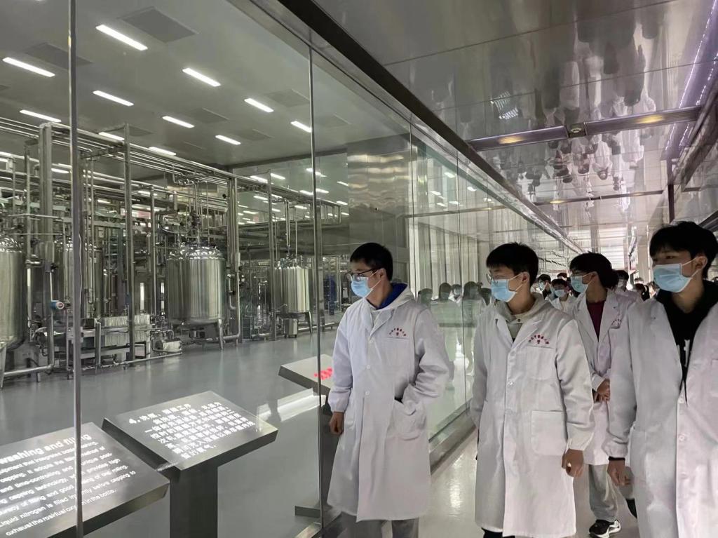 在专业工程师的带领下,同学们参观了全球唯一的一条中药液体制剂智能生产线,学习了提取、纯化、配料、灌装、灭菌、捡漏、装盒、装箱、码垛等生产工序,尤其是车间智能化水平之高给同学们留下了非常深刻的印象。