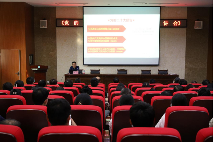 宣讲中,薛晓从深刻领会党的二十大的重要意义、系统把握党的二十大精神、全面贯彻落实党的二十大精神三个方面进行阐述。他表示,全面贯彻落实党的二十大精神,要坚定拥护“两个确立”,坚决做到“两个维护”。党确立习近平同志党中央的核心、全党的核心地位,确立习近平新时代中国特色社会主义思想的指导地位,反映了全党全军全国各族人民共同心愿,对新时代党和国家事业发展、对推进中华民族伟大复兴历史进程具有决定性意义。他强调,青年强,则国家强,全面贯彻落实党的二十大精神需要广大青年大学生奋进新征程、建功新时代。广大青年要坚定不移听党话、跟党走,怀抱梦想又脚踏实地,敢想敢为又善作善成,立志做有理想、敢担当、能吃苦、肯奋斗的新时代好青年。