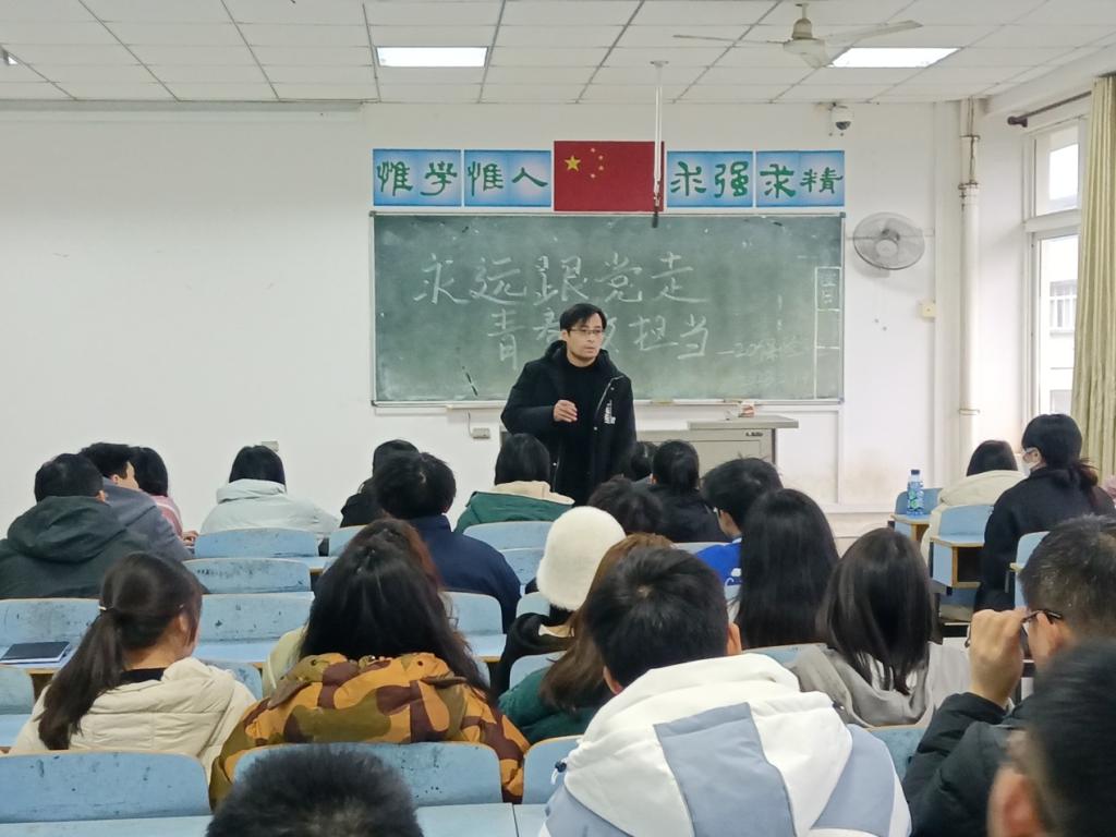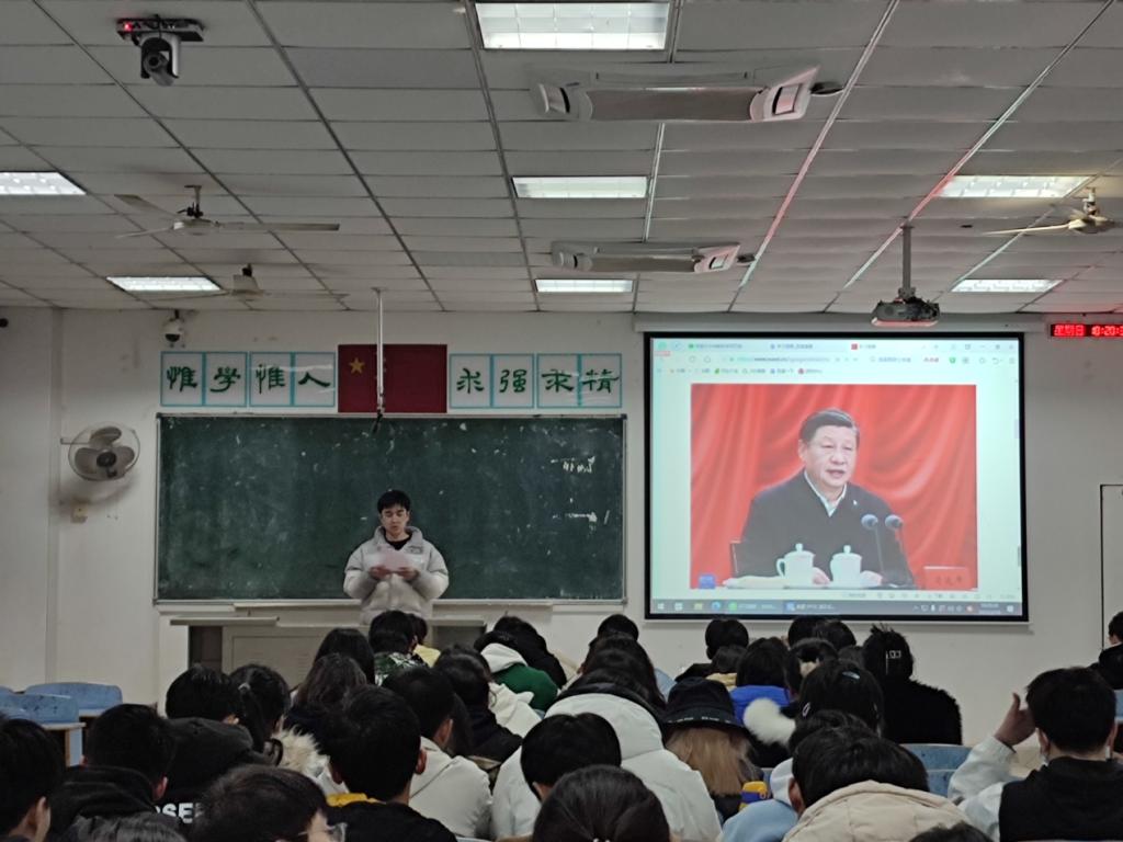 江中新闻网讯(通讯员 桂少波)为深入开展好“开学第一课”,引导同学们以新风貌迎接新学期校园生活,经济与管理学院精心组织各班级于2月19日晚召开“永远跟党走·青春敢担当”主题班会,学院辅导员、兼职班主任到班级指导。