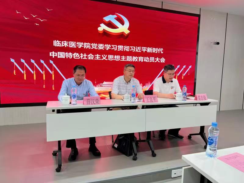 江中新闻网讯(通讯员 吴志辉) 为全面落实学校党委主题教育动员大会精神,4月20日下午,临床医学院党委在阳明校区召开学习贯彻习近平新时代中国特色社会主义思想主题教育动员会,在全院师生党员中部署主题教育工作,学校党委第二督导组组长王良平同志到会指导。动员会由学院党委负责人主持,学校党委第二督导组成员、学院领导、全体教工党员、学生党员代表和群众代表参加了会议。