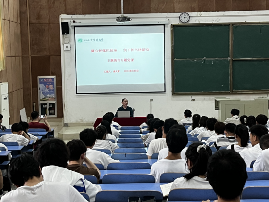 江中新闻网讯(通讯员 吴剑)5月5日,经济管理学院开展“凝心铸魂担使命 实干担当建新功”主题教育专题党课活动。学院党委书记带头宣讲,以“凝心铸魂担使命 实干担当建新功”为主题为师生讲述主题教育专题党课。100余名师生参加党课学习。