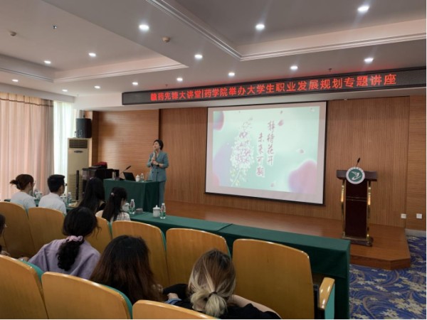 此次讲座邀请扬子江药业集团泰州祥泰健康管理有限公司总经理宋文婕就大学生职业发展规划进行经验分享。宋经理首先阐述了职业发展的基本规划,并分享了自己的职业生涯经历和经验,宋经理提出,大学生的职业规划应从早开始,同学们应该对自己有一个明确而精准的定位,从而在大学的学习生活中制定目标。谈及毕业生就业问题,宋经理叮嘱学生进入企业工作后先进行轮岗学习,找到最契合自己的工作岗位,再向下扎根、向上生长。