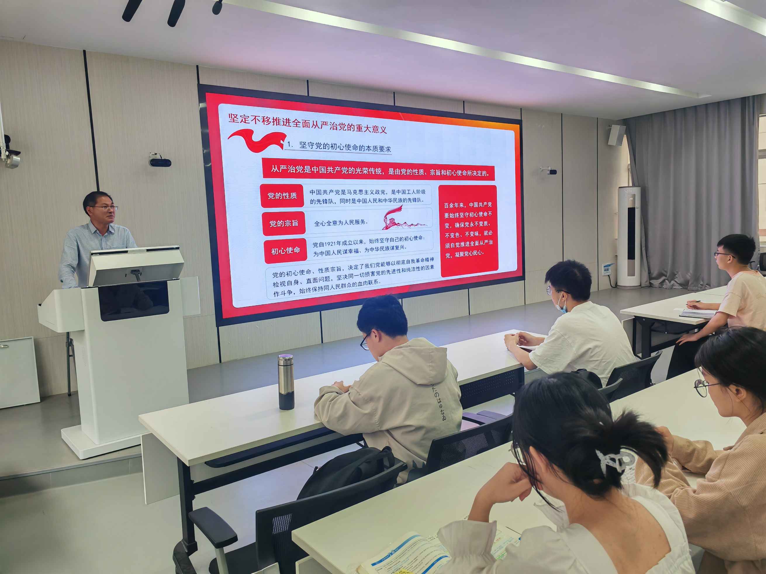 学院院长围绕《新时代全面从严治党的重大意义、历史性成就与规律性认识》专题,从坚守党的初心使命、党百年奋斗的历史经验、实现中华民族伟大复兴的根本保障等方面阐述全面从严治党的重大意义。他指出,要坚持思想建党、理论强党,坚持不懈用习近平新时代中国特色社会主义思想武装头脑、指导实践、推动工作。