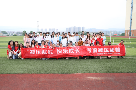 江中新闻网讯(高贵森 王婧雯)为进一步学习贯彻习近平新时代中国特色社会主义思想主题教育工作,更好解决学生所急所盼所求,帮助我院学子正确认识、了解、释放考试压力,5月26日下午,我院在湾里校区北区田径场开展“减压赋能,快乐成长”的考前减压团辅志愿活动。学院领导班子成员、学生辅导员以及70多位学生参与此次活动。