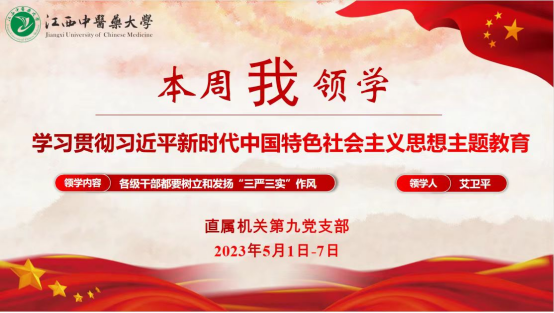 江中新闻网讯(通讯员 曹森 艾卫平)为深入推进学习贯彻习近平新时代中国特色社会主义思想主题教育,牢牢把握“学思想、强党性、重实践、建新功”的总要求,自5月份以来,直属机关第九党支部启动了“本周我领学”活动,至今已开展了四期。