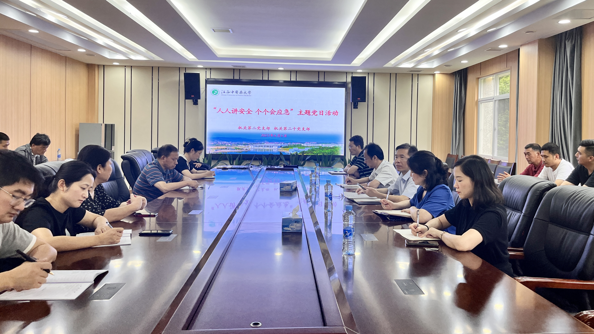江中新闻网讯(通讯员 寇汗为)6月6日,直属机关第二党支部、第二十党支部联合开展“人人讲安全、个个会应急”主题党日活动。此次主题党日活动扩大到校办小车队,所有在岗公务用车驾驶员列席了此次主题党日活动。