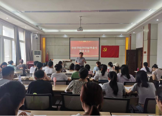 学院党委副书记向即将离开母校、踏上人生新征程的毕业生们表达了祝福。他希望毕业生党员们毕业后继续学习和努力,成为会做事、会做人、会学习、会交流的复合型中医学人才,牢记肩上的使命责任,厚植家国情怀,在新的岗位上发光发热,在任何地方都能发挥党员的先锋模范作用。同时,他也希望毕业生们关心母校发展,常回家看看。学生党总支副书记为毕业生党员们详细讲解了党组织关系转接相关工作要求。