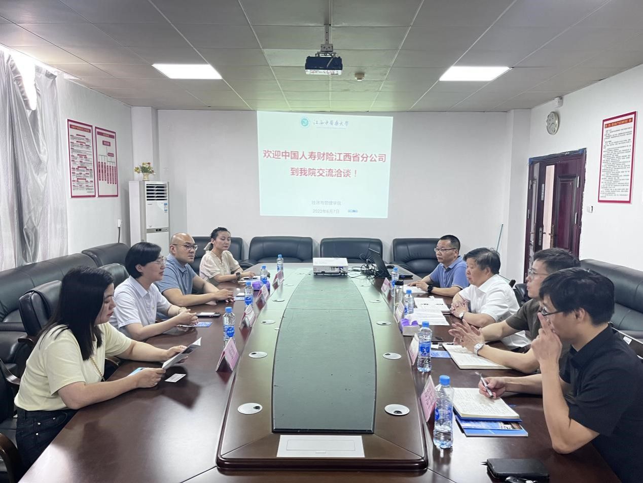 6月7日下午,学院邀请中国人寿财险江西省分公司人力资源部总经理欧小珲一行到学院开展合作座谈,会议由学院院长主持。会上,学院院长首先代表学院对参会企业领导的到来表示热烈欢迎,并详细介绍了学院学科建设、师资队伍、人才培养、2023届和2024届保险专业学生情况等;企业负责人就业企业发展状况、人才需求、人才培养模式等情况展开细致介绍。期间,双方聚焦联合培养人才、共建实践基地、会谈成果转化等内容进行了深入交流。并就实习基地建设、企业招聘学生就业双促进以及其他合作事宜初步达成了合作意向。