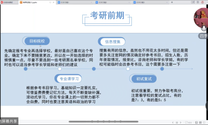 在交流互动环节,考研优秀学子对同学们的疑惑做出认真解答,气氛融洽。同学们纷纷表示在此次考研经验交流分享会中收获满满,将以他们为榜样,努力拼搏,争取来年取得更好的成绩。