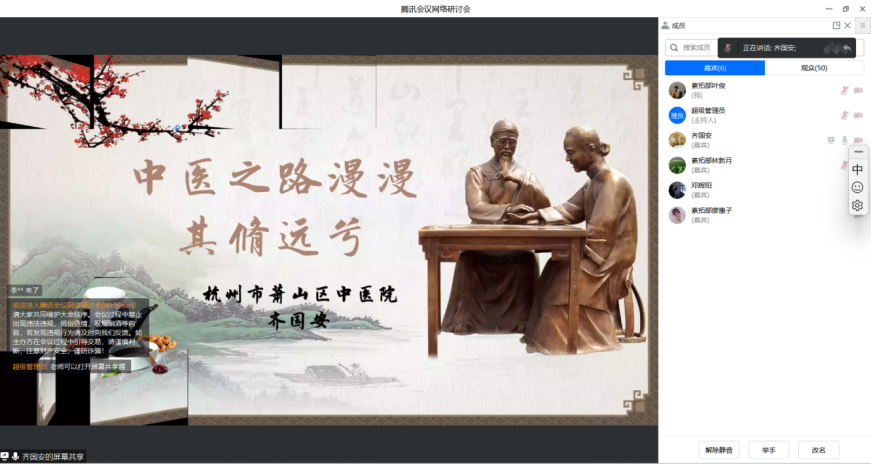 江中新闻网讯(通讯员 叶俊)6月4日晚7点,杭州市萧山区中医院副主任中医师齐国安做客第72期中医大讲堂,开展了主题为“中医之路漫漫其修远兮”的学术讲座。中医学院、临床医学院、针灸推拿学院、药学院等学院近200名师生参与了本次腾讯会议线上直播讲座。