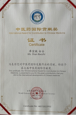 单宝枝在中医药国际传播、出版以及中医英语翻译、国际教育、学会管理等方面进行了系列开拓性工作,取得了突出的成绩,促进了中医药在海外的健康发展。30年来,她对中医药国际传播规划性、规范性、系统性渠道、路径和策略进行了积极、有益、创造性的探索,引领了基于中医药国际教材出版、国际教育、世界中联国际标准应用和推广的中医药学术国际传播高质量路径和策略的开拓、实施和完善,促进了中医药国际交流与合作以及国际中医药人才培养,为中医药国际传播做出了突出的贡献,在海内外中医药界有重要学术影响。