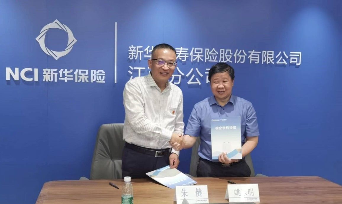 江中新闻网讯(通讯员 陈永成)6月29日下午,经济与管理学院与新华保险江西分公司合作签约会议举行。新华保险江西分公司总经理朱健、人力资源部经理黄玉琴、魏舔舔、经济与管理学院负责人、教研室负责人以及4位校友代表参加签约仪式。