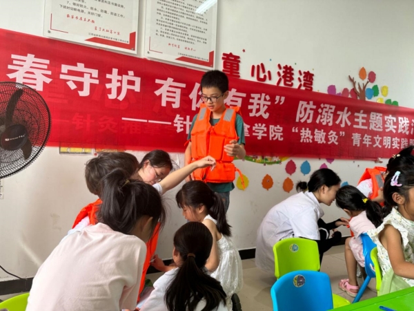 江中新闻网讯(通讯员 熊水明 郭舒)6月30日,针灸推拿学院“热敏灸”青年文明实践服务队走进夫田村新时代文明实践站童心港湾,开展了中医药文化宣传、防溺水自护教育、普通话宣传推广、关爱留守儿童等多种形式的精准关爱志愿服务,丰富留守儿童的暑假生活。